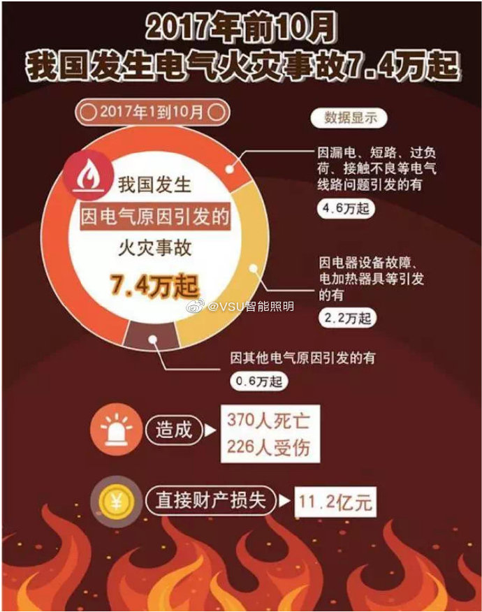 據(jù)公安部消防局統(tǒng)計(jì)顯示,2011-2016年:電氣火災(zāi)52.4萬起;造成3261人死亡;兩千余人受傷;經(jīng)濟(jì)損失達(dá)92億余元;每年觸電身亡約每小時1人。