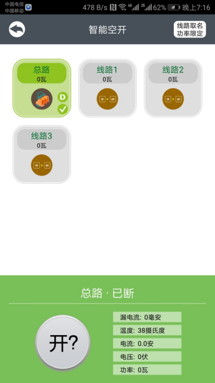 個人手機(jī)客戶端個人用戶通過手機(jī)號、微信、QQ登陸遠(yuǎn)程設(shè)置、查詢、遙控或定時開關(guān)自動完成漏電保護(hù)功能自檢分線路用電計(jì)量,故障實(shí)時報(bào)警等。