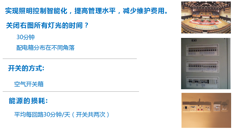 在商業樓宇中,照明占總電力消耗的比例為30%。在其他電器不便做到低能耗,同時又不影響原來工作需求的情況下,選擇進行照明節能改造顯然是個不錯的選擇。這也是為什么越來越多的建筑樓宇選擇照明改造的原因,有的工程或從新建開始就選擇不再使用傳統照明控制,而是直接采用智能照明控制系統。也許你還沒體會到,但下面這些傳統照明控制問題都是不可忽視的。