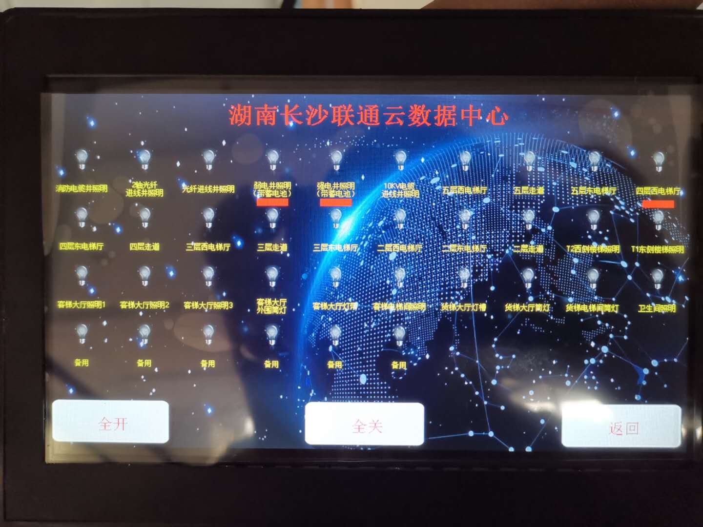 VSU為長沙聯通云數據中心打造高效智能照明控制系統,真正實現大幅度降低能耗,該項目于今年九月完成智能照明調試工作,通過觸摸屏集控燈光回路。走廊,電梯廳等公共區域安裝了人體感應器,實現人來燈亮,人走燈滅。