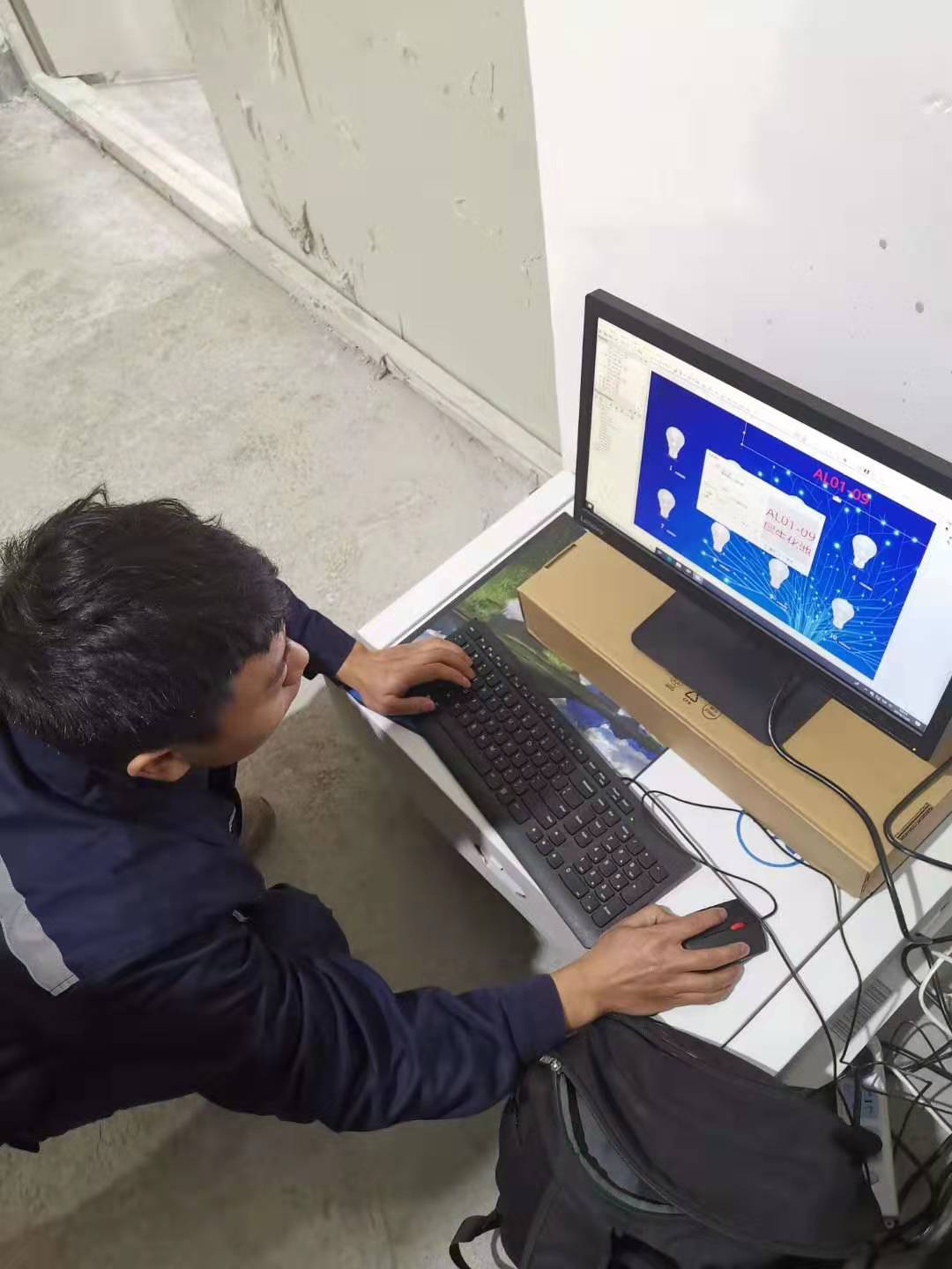 VSU智能照明控制系統可實現對區域內所有燈具開閉,調光調色,定時控制,空調高中低三檔、電動門、電動窗簾開閉,可帶人感、光感,實現全自動化。控制方式可選擇手機、電腦、觸摸屏、面板。根據客戶需求,VSU為安康江南再生水廠該項目設計的控制方式為電腦+觸摸屏。下圖為現場測試情況: