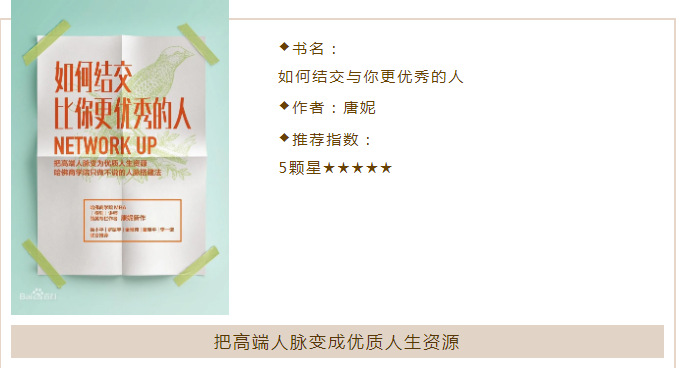 每個人都希望自己的學習、生活圈中能接觸到那些比自己更優秀的人,讓自己變得更優秀。而實際上并非如人所愿,每天在期望著卻并未去行動,最終只會讓自己離優秀越來越遠。并且悔恨時間過的太快,卻從未好好反思如何利用好當下自己的亮點,及時抓住機會時刻關注可以與優秀的人結交機會,亦或者不斷提升自己的各方面能力,讓自己變的更優秀.我們在日常的人脈搭建中,時常會進入“不敢”“不愿”“不會”的三大誤區,是什么情況又該如何解決呢?不敢,是因為我們不夠自信,特別是向上結交。常常認為別人比我們優秀的多,我們不敢開口,錯失機會。那就是要解決我們不自信的問題,如何讓自己變得自信,這是一個大話題。可針對我們不自信的方面(口語表達、邏輯分析等)找出自身的原因,并找到解決的方法。另外這本書,我比較深刻的地方是,一個人不管是事業的成功還是生活的歡樂,80%歸因于和別人相處,20%才是來自自己的心靈。我也像作者康妮提到那樣一類人一樣,在手機通訊錄里躺著很多聯系人名字和號碼,有好多我真的想不出都是誰,長什么樣子,包括朋友圈一樣,這些聯系人都是我們日常可以維護或者找到學習亮點的人。通過這本書的學習,讓我認識到,一定要學會管理自己的聯系人,使他們成為自己的深度好友,還要學會連接優秀的人,不過,了解結交更優秀的人的方法和技巧,只是改變的第一步。要想成為人脈達人,還要在實際生活中刻意練習,及時總結經驗教訓。