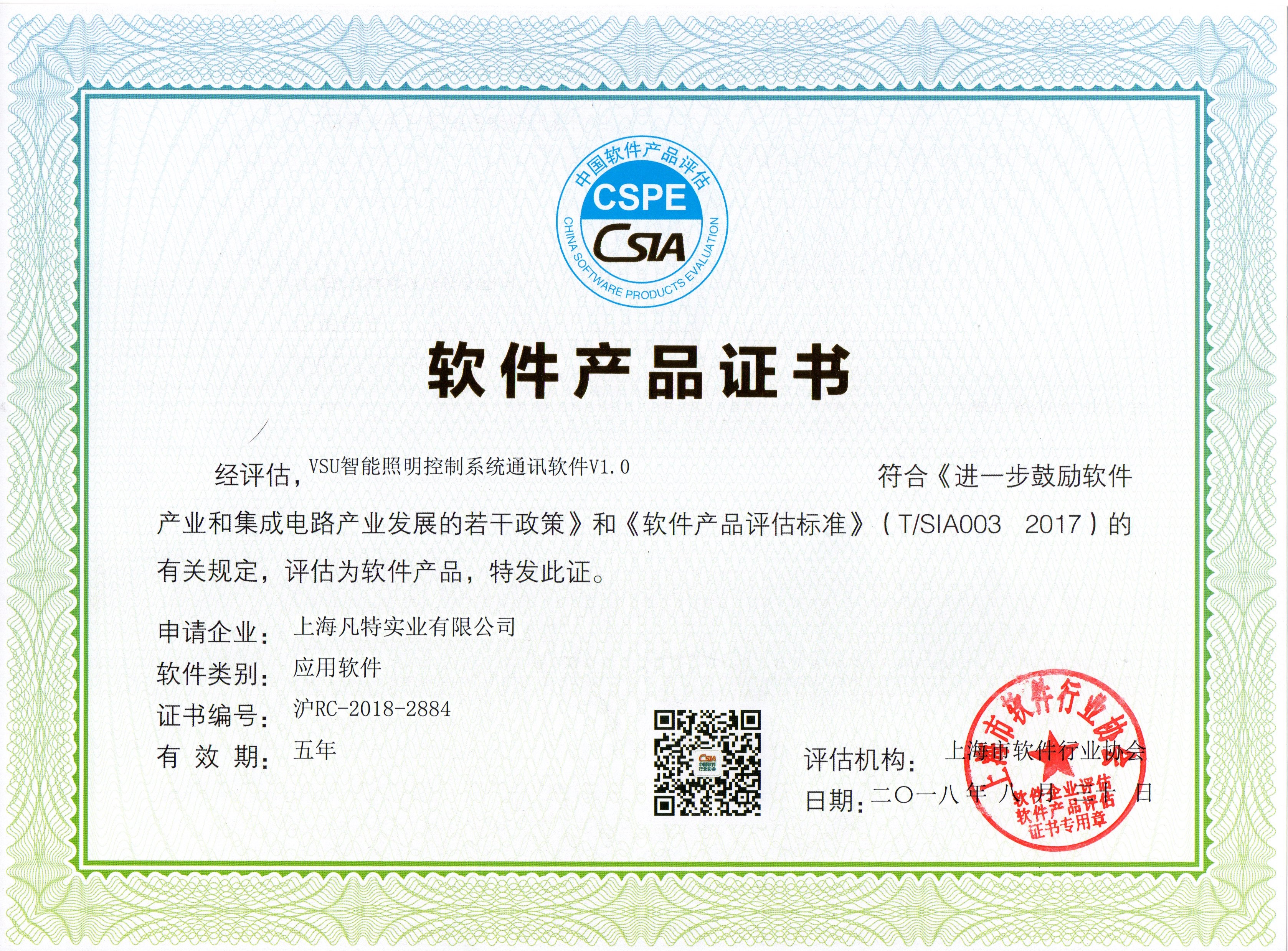 VSU智能照明有多項自主知識產品證書,所有產品都經過國際CE認證,符合國際電工標準。